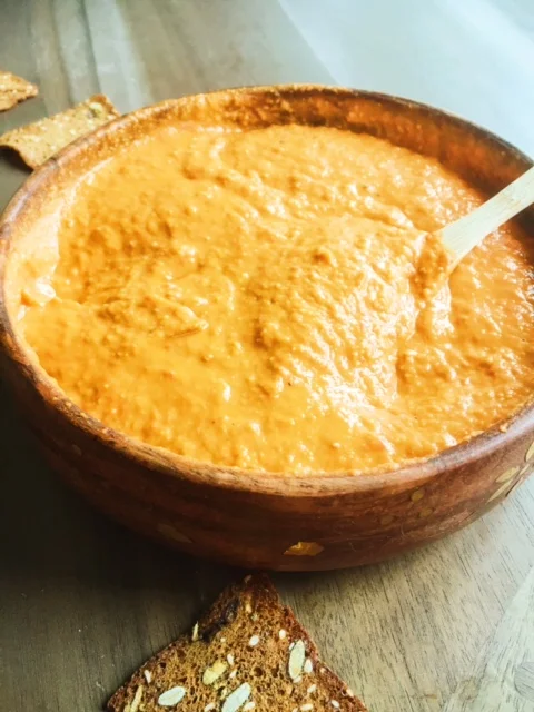 Place all ingredients to a medium bowl and using stick blender, stir until well incorporated. (You may also use a food processor). Chill for about an hour. You might notice the top layer gets a little brown in the fridge. Don’t fret. Just skim it off with a knife and you’ll see some goodness underneath.