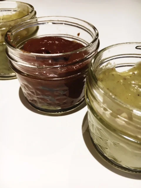For the nuts, I actually didn’t even use pistachio (though you may), but I wanted to use something that most people have in their fridge, and since I didn’t feel like washing the food processor twice just to blend the nuts, I thought ….what about this cute little nut butter I have in the fridge. I ordered this little collection from manna organic bakery and they sat in there in the fridge for like 2 months, I guess because I thought they were so cute in there. I had pecan, walnut, mixed nuts and a couple others. I ended up going with the pecan. OMG. There is a hint of honey in the blend and the combo is killer. If you’re looking to expand your nut butter collection, you must check these out. Other option is to use any variation of nut butter that you have and let me know how it turns out!