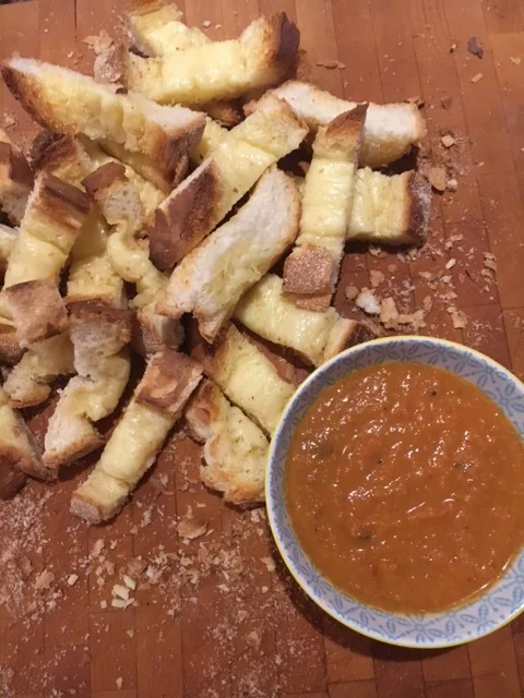 Crispy Grilled Cheese dipped in Garlicky hot tomato soup. Ummmmm, ok!