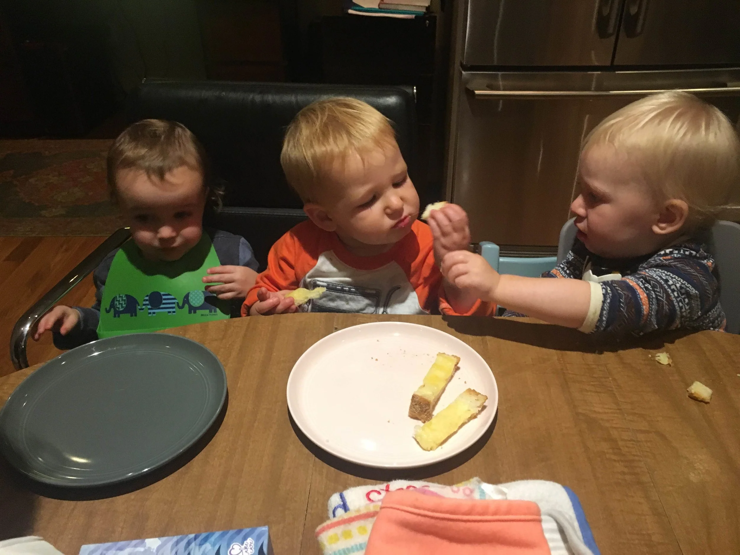 Tommy (pictured right) and his friends Hudson (left), and Declan (center) taste testing.