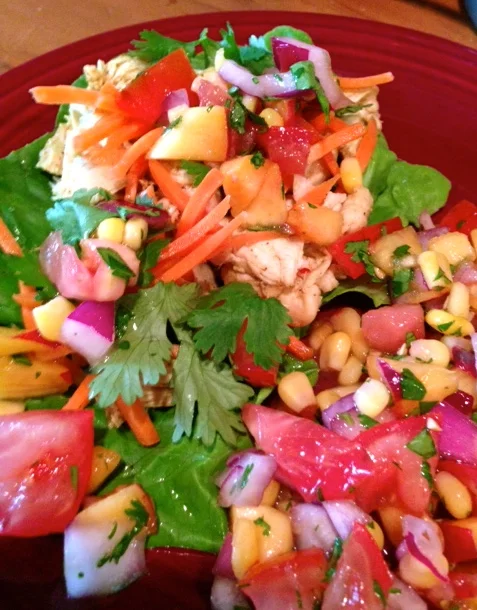 Open up lettuce onto your plate, add chicken mixture, and finally top with salsa!