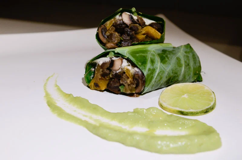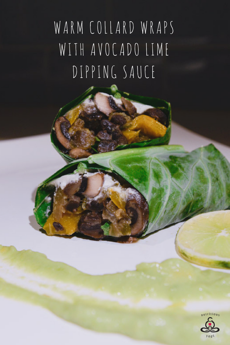 Warm Collard Wraps with Avocado Lime Dipping Sauce
