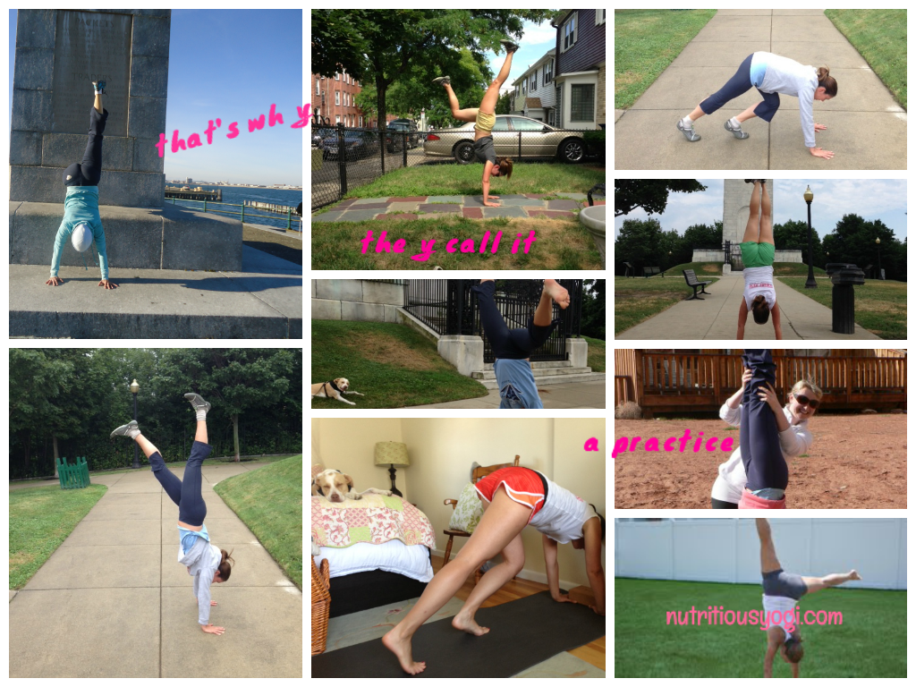 Yoga: That's why they call it a practice. Stretching and strengthening your body in the right areas will help you get closer and closer to going upside down. With handstand, so much of it is fear based.